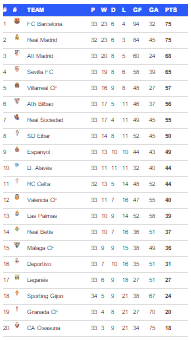 Dan Inilah Klasemen Liga Spanyol Terbaruu :